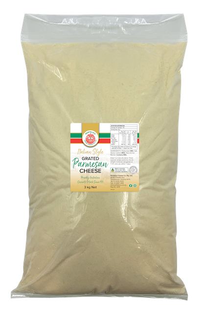 INGREDIENTS: Parmesan Cheese (Pasteurised Milk, Salt, Starter Culture (Milk), Non-Animal Rennet), Anti-caking Agent (Rice Flour). Contains: Milk.