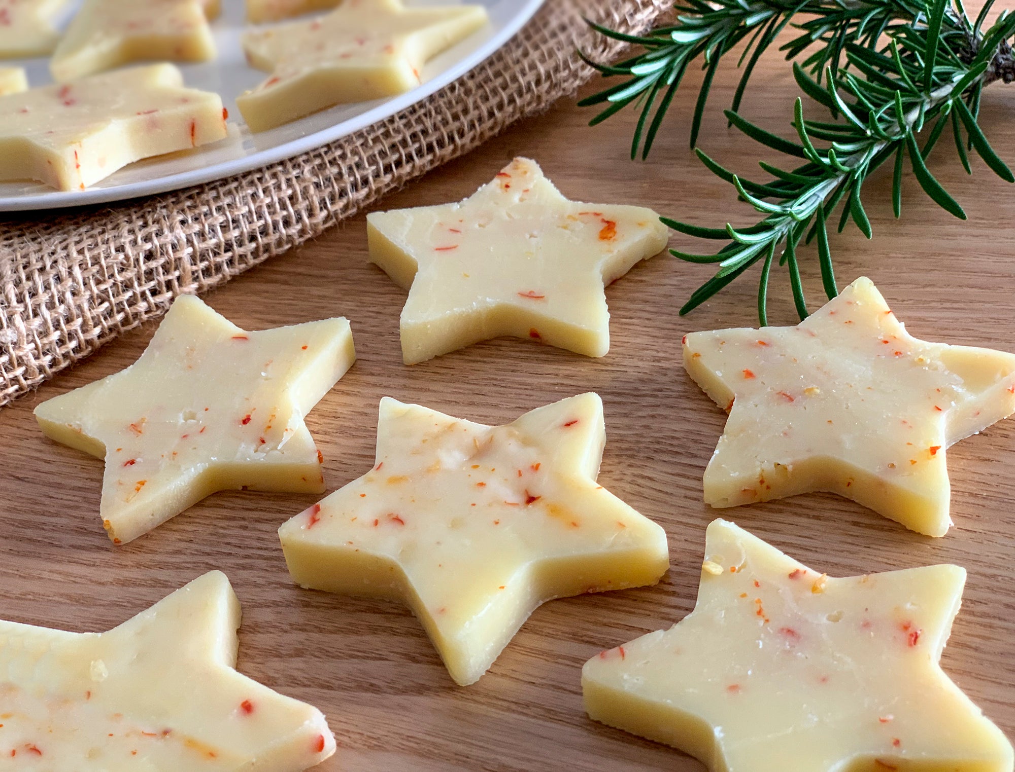 Our multi-award winning Red Chilli Cheese ignites tradition with a modern twist, marrying creamy smoothness with a gentle spark of heat. This young, firm cheese is delicately infused with vibrant red chilli flakes, balancing mild, milky richness with a refined touch of spice. Elegant yet exciting, it adds depth and distinction to any dish while remaining wonderfully versatile.