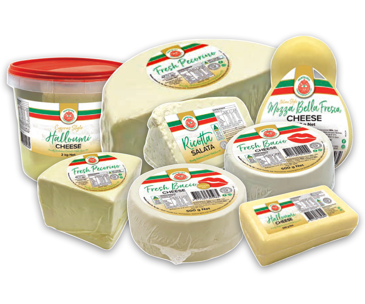 Mozza Bella Fresca delivers a delicate, milky taste and creamy texture that melts into luscious pizzas, lasagna, or cheesy garlic bread. Halloumi is salty, squeaky, and perfect for grilling, frying, or adding to pastries and gourmet burgers. Fresh Pecorino is young and mild, ideal for grazing boards, baked sides, or paired with fruit, bread, and honey. Ricotta Salata adds a salty, crumbly finish to pasta, salads, pizzas, or savory tarts, while Fresh Bacio — award-winning and reduced-fat — is perfect sliced, grilled, or cubed for sandwiches, panini, or as a side.